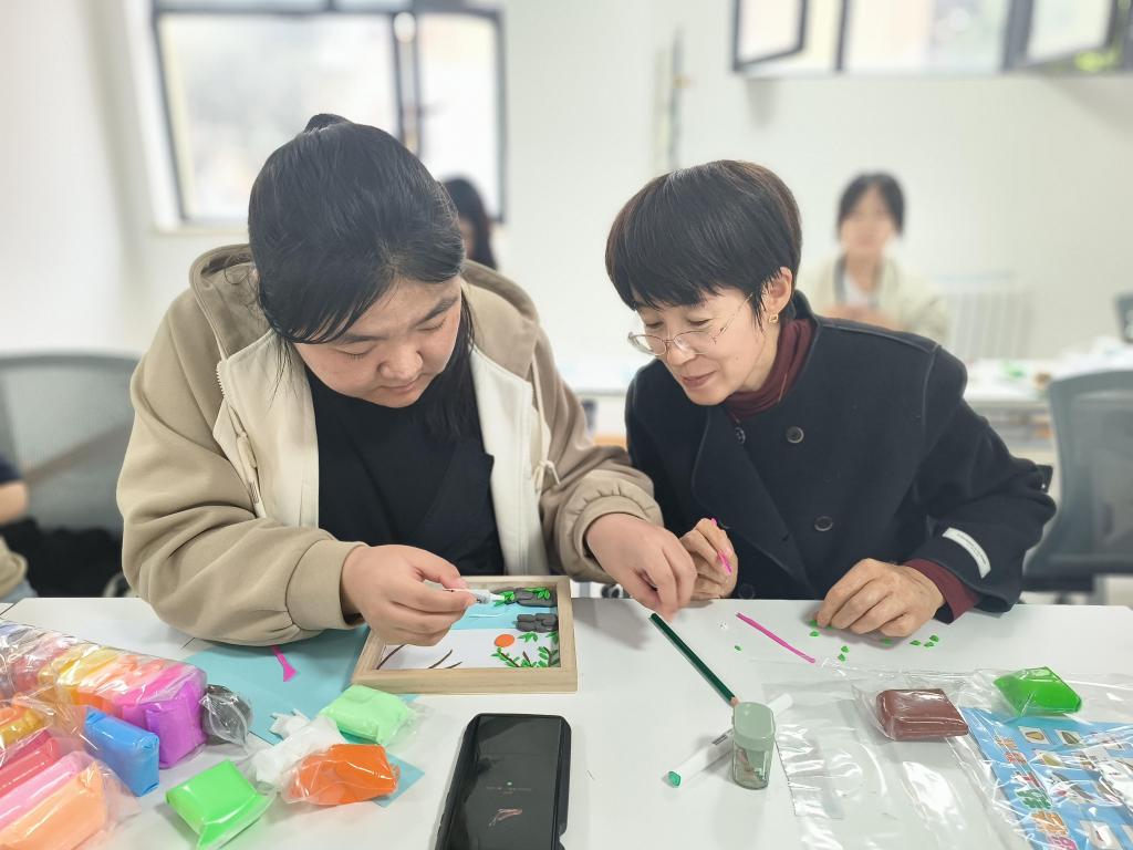 在简单的技巧讲解和示范后,满怀好奇的学生和对传统文化抱有浓厚兴趣的老师们纷纷投入了创作。他们从熟悉的经典诗词中汲取灵感。有的选择了表现李绅《悯农》的“锄禾日当午,汗滴禾下土”,用棕褐色粘土塑出弯着腰的农夫身影,搭配金色的禾苗与深褐色的土地,传递出劳作的辛劳;有的钟情于杜甫《绝句》中的“两个黄鹂鸣翠柳,一行白鹭上青天”,精心捏制出嫩绿的柳条、灵动的黄鹂与展翅的白鹭,画面充满生机……